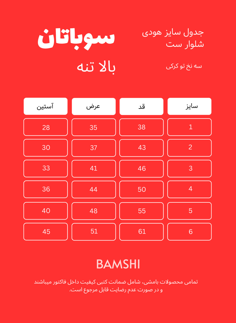توضیحات انتخاب سایز: