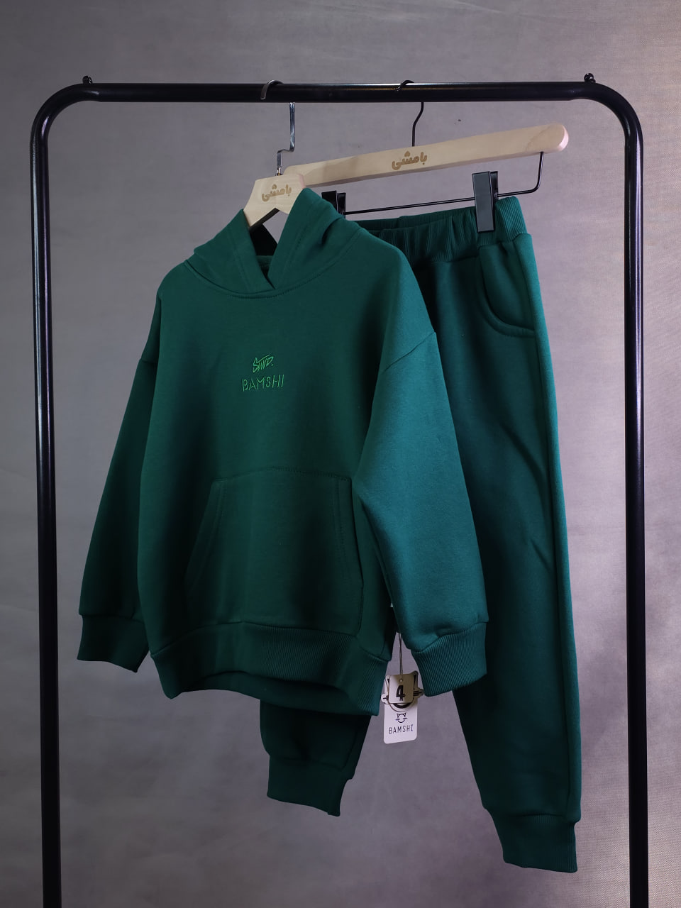 ست هودی و شلوار سه نخ تو کرکی بامشی مدل سوباتان بسته دو عددی رنگ کله‌غازی