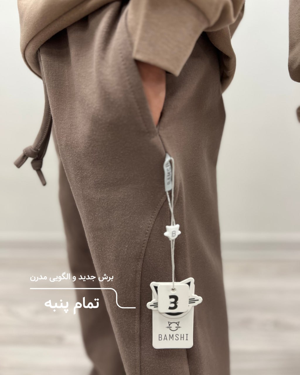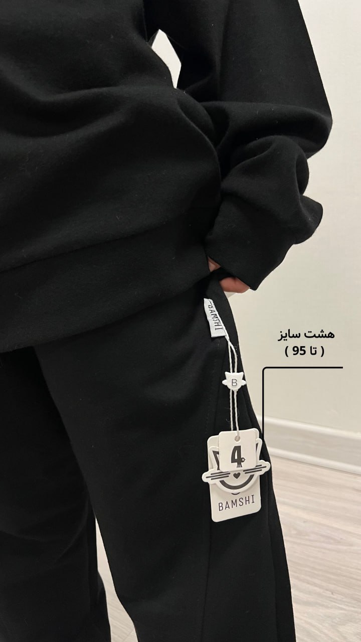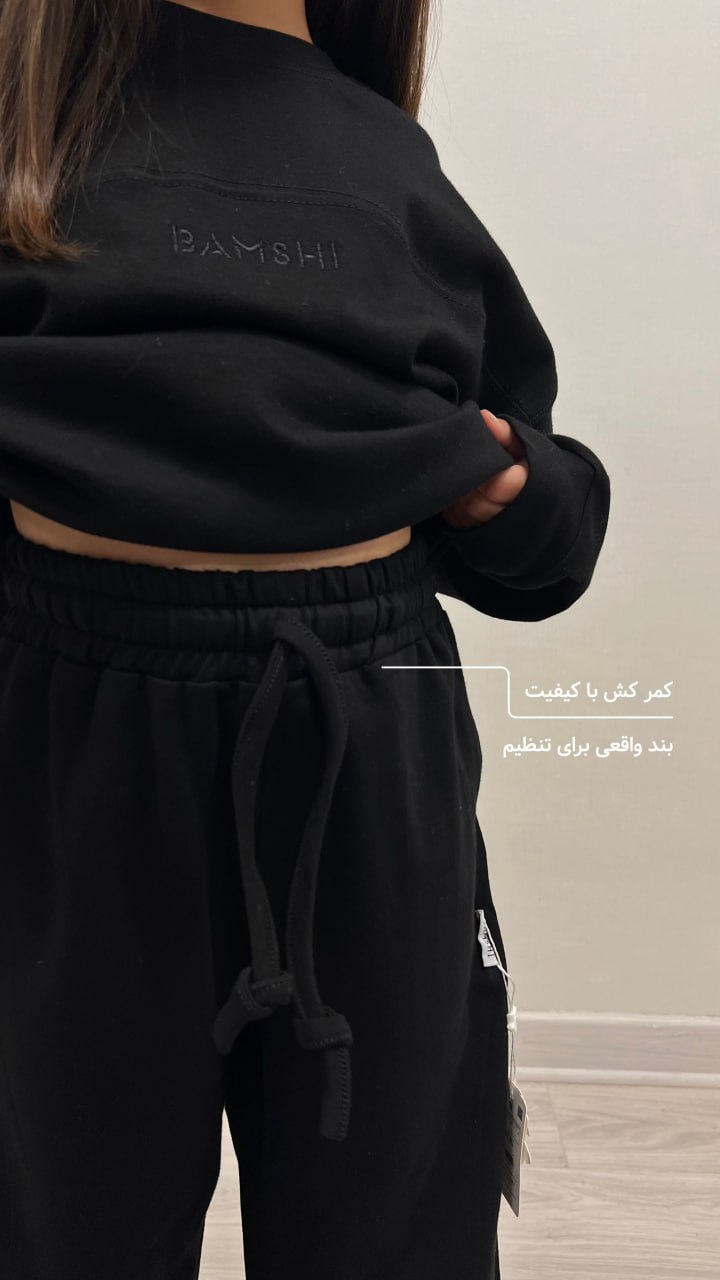 شلوار مدل داران: دارای دو جیب - برش روی کار - گلدوزی BAMSHI پایین شلوار - دارای بند برای تنظیم سایز