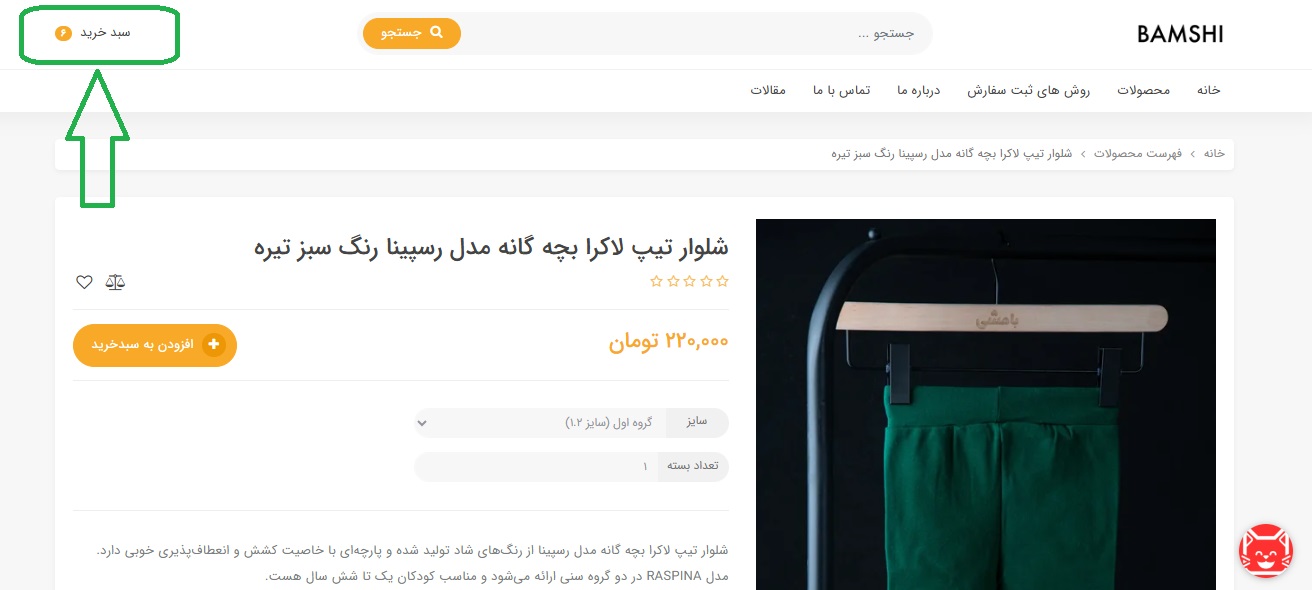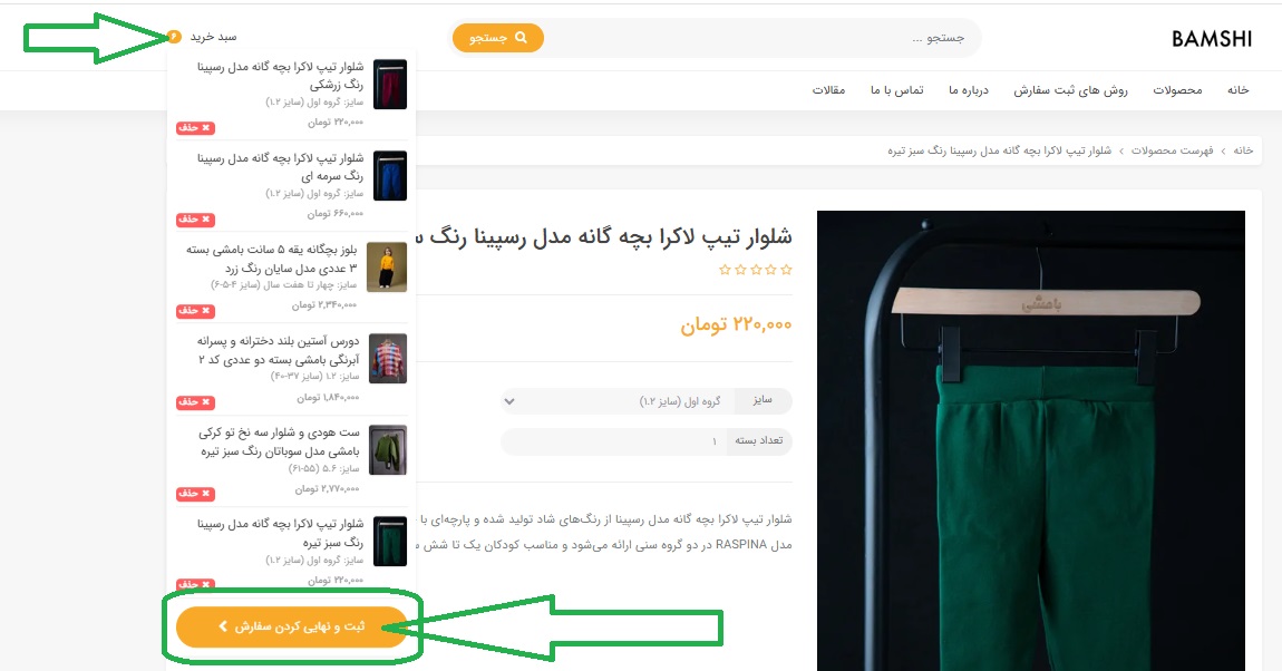 روی آیکون سبد خرید کلیک کنید تا جزئیات سفارش خود را ببینید.