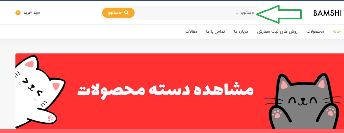در صفحه اصلی فروشگاه، میتوانید با استفاده از نوار جستجو، نام محصول دلخواه خود را وارد کنید.