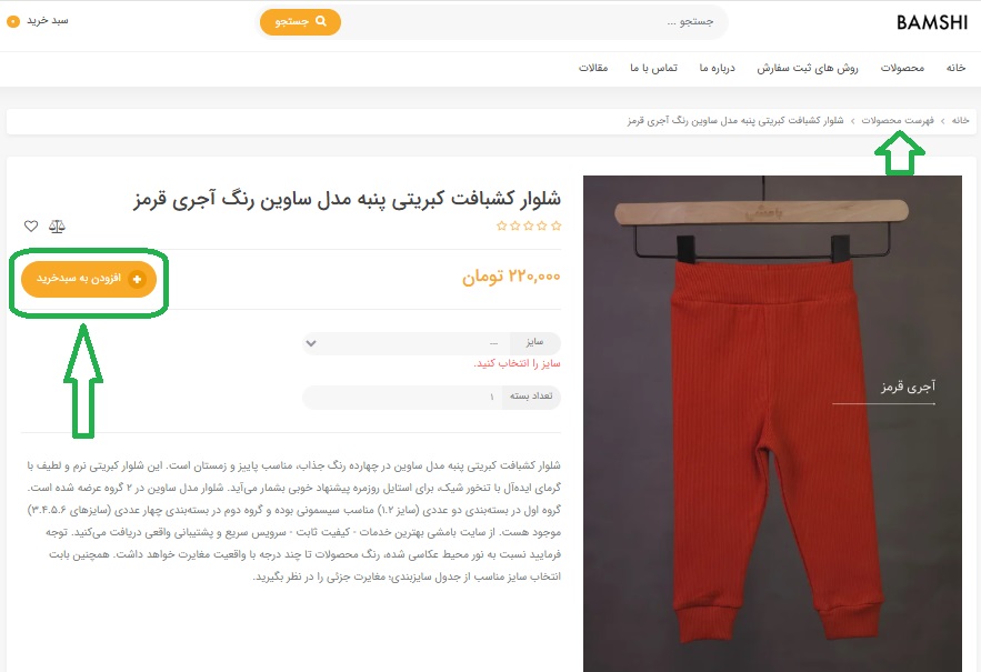پس از انتخاب کالا، گزینه «افزودن به سبد خرید» را بزنید.