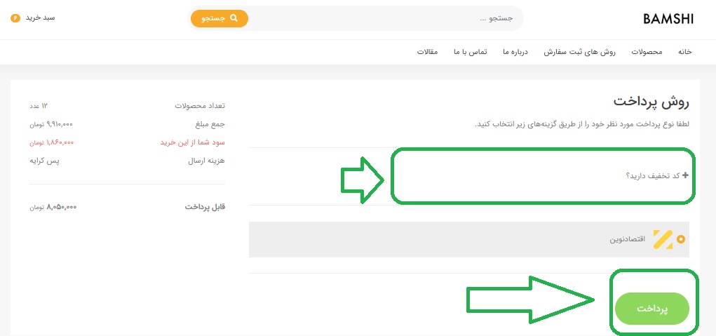 در صورت اعلام کوپن تخفیف در عمده فروشی بامشی، در قسمت کد تخفیف بنویسید و از تخفیفات ویژه لذت ببرید.