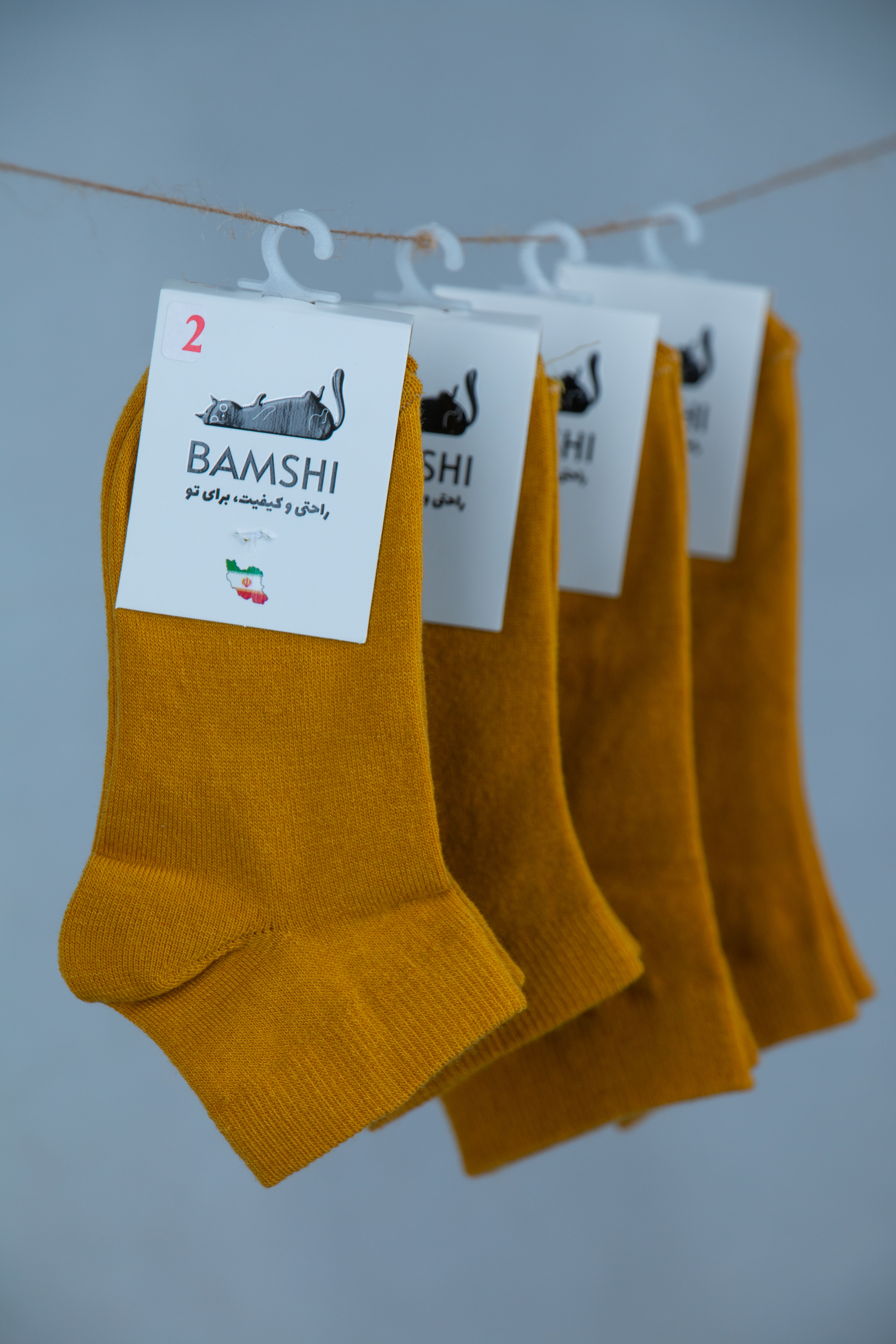 جوراب پنبه مچی بچه گانه بامشی بسته 12 عددی رنگ خردلی