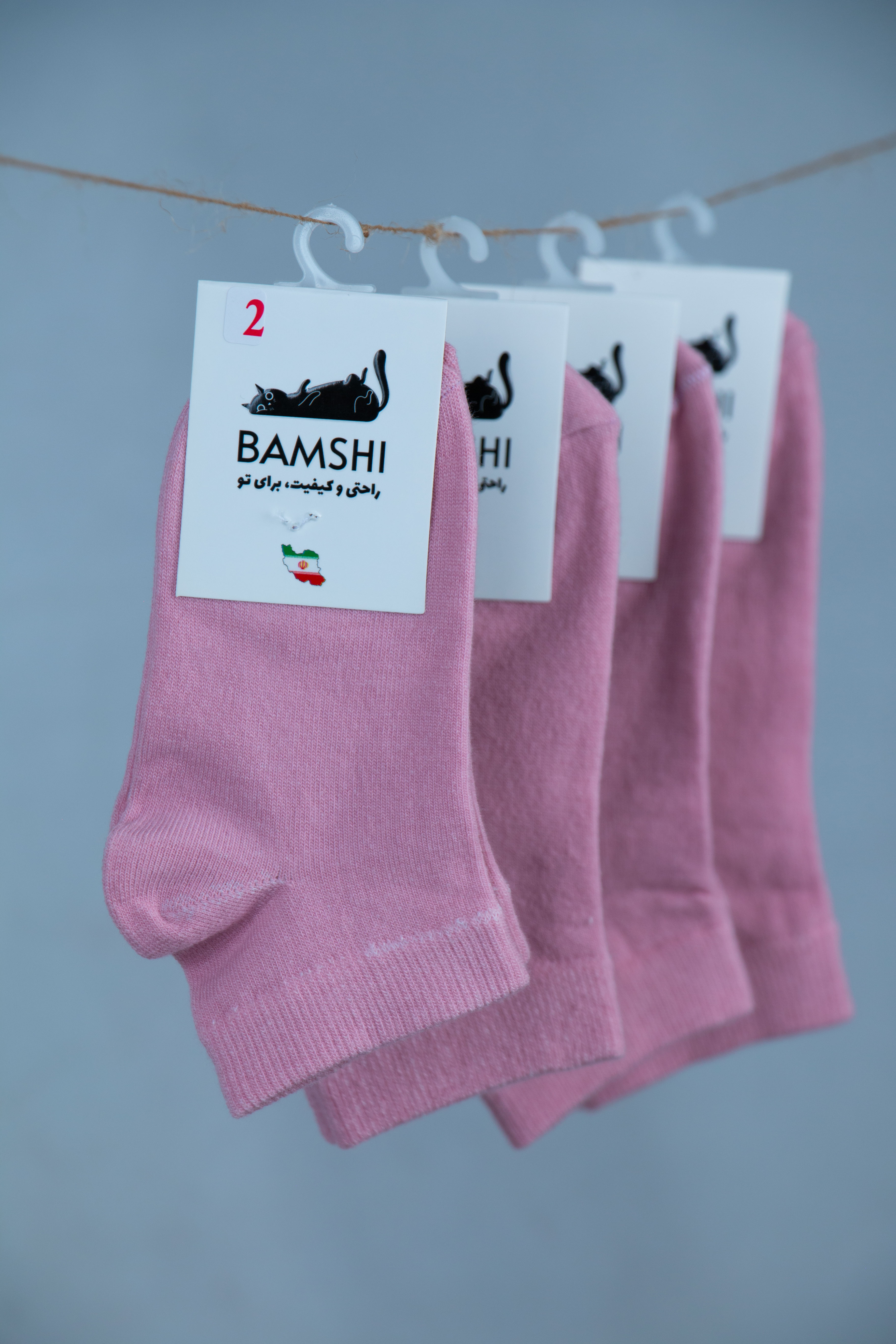 جوراب پنبه مچی بچه گانه بامشی بسته 12 عددی رنگ صورتی